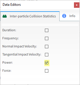 Inter-group Collision Statistics:允许收集每个颗粒-颗粒和颗粒-边界对的能量耗散数据。