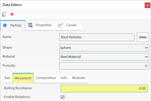 注意: 启用Energy Dissipation后,Rocky将在仿真中收集为每个颗粒-颗粒和颗粒-边界对记录的碰撞能量耗散值。