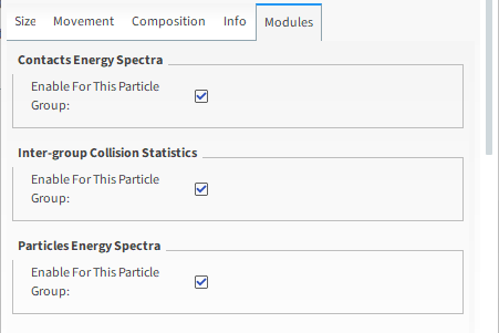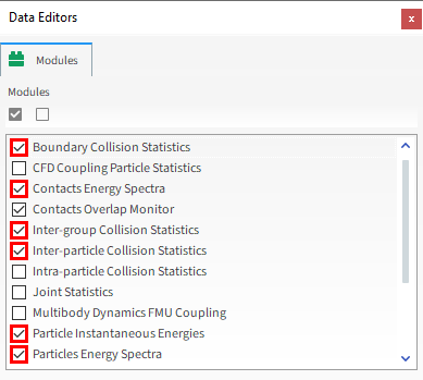 注意: 这只适用于我们启用的五个碰撞统计和能量频谱模块;无法限制Particle Instantaneous Energies的数据收集。