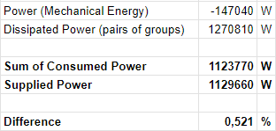 如果我们比较电子表格中的值,我们会看到能量平衡满足了≈ 0.5%的差异。