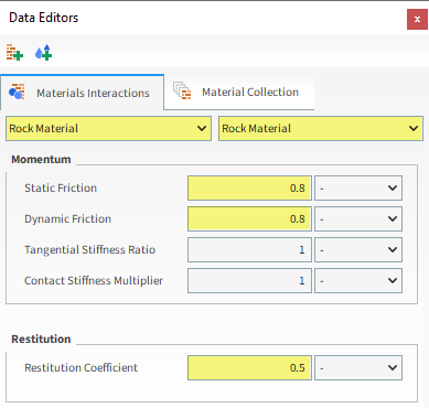 从Data Editors面板中,选择Momentum子选项卡,然后设置Rolling Resistance Model,并更改Numerical Softening Factor。