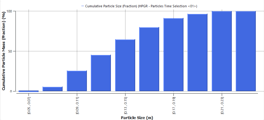 步骤 位置 参数或操作 设置 A Histogram <01> | Configure Histogram Weight Particle Mass⯆ Cumulative Bins (已启用) Percent Values (已启用) 属性 Particle Size 限值 User Defined⯆ 最小 0.05 [m] Max 0.25 [m] 单击OK。
