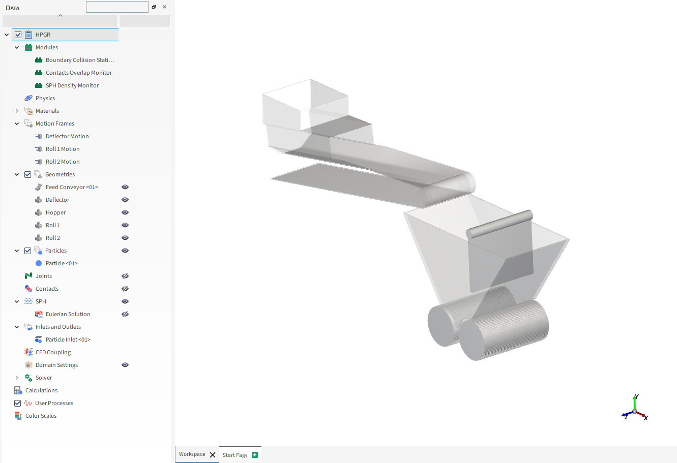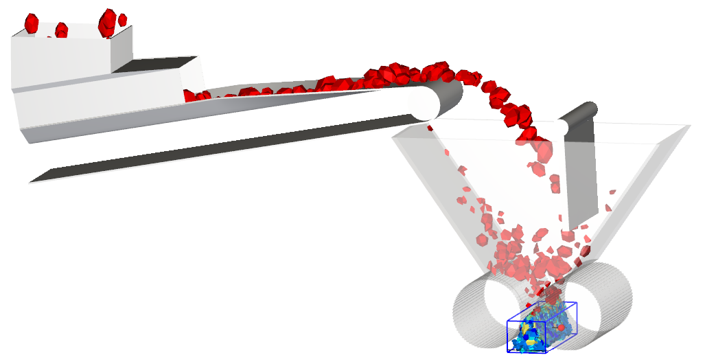 本教程的主要目的是分析颗粒碎片,查看表面磨损修改,并比较我们在第一部分处理的高压磨辊(HPGR)仿真中收集的功率数据。