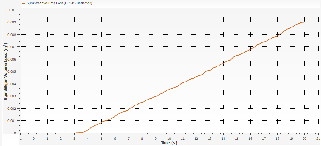 另一个可能的分析是验证几何结构的磨损体积损耗。按照以下步骤可视化导料板几何结构因磨损造成的体积损耗,并创建磨损体积损耗属性的时间图。