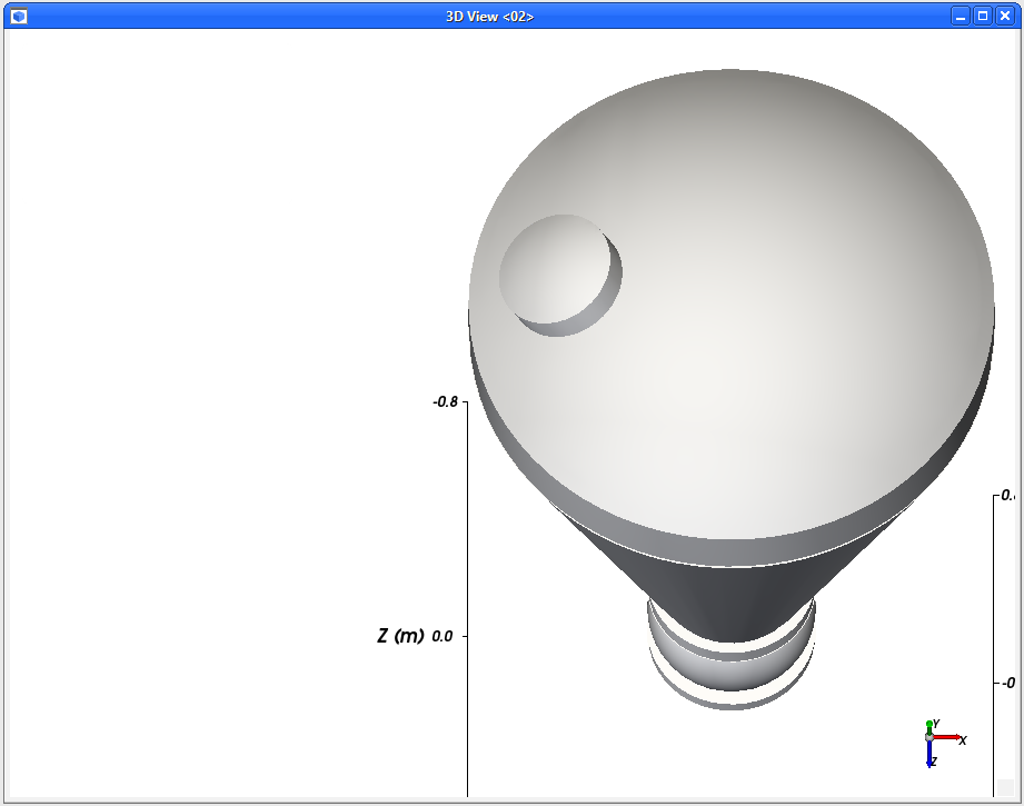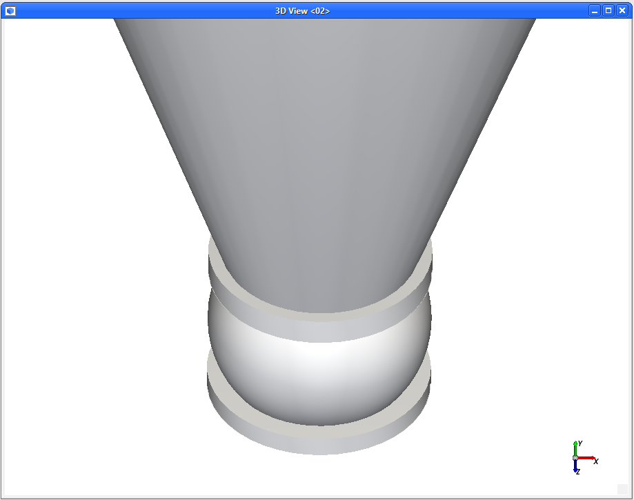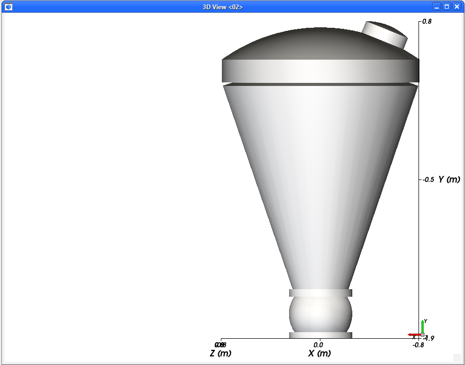 使用鼠标右键向上拖动几何结构,直到完全显示出料阀,且只有筒体底部的三分之一是可见的。(结果如图所示。)