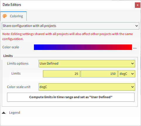返回到Coloring选项卡,Limits选项可以通过从下拉列表中选择User Defined来手动设置。在本教程中,应定义Limits值和Color-scale unit(如图所示)。