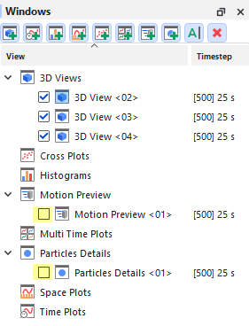 Windows:Plot、Histogram、Motion Preview、Particles Details