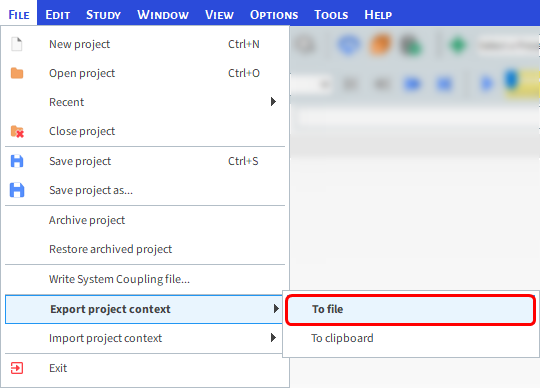 从File菜单中,指向Export project context,然后单击To file。