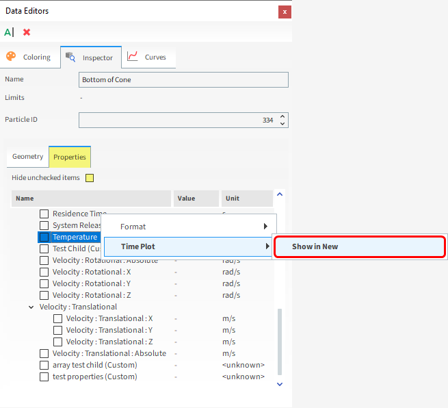 从Properties子选项卡中,右键单击Temperature,指向Time Plot,然后单击Show in New。