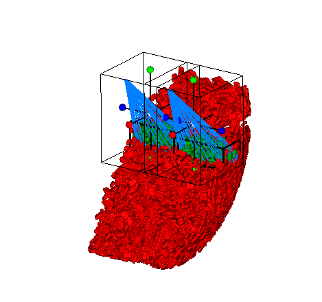 Rocky中的接触是指在仿真过程中经历了与另一个颗粒碰撞的几何结构或颗粒所在的特定位置。