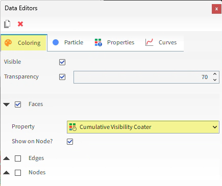 从Data Editors面板中,选择Properties选项卡,然后将Cumulative Visibility Coater拖放到Particles Details窗口。