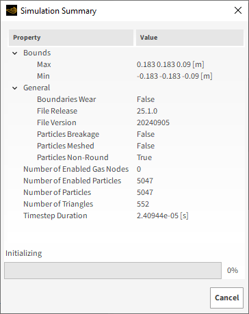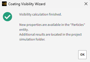 注意: 您可以留在向导中进行某些类型的可见性后处理(如下一节所示)。在向导之外,您还拥有了Rocky中Particles实体的新属性以及位于项目仿真文件夹中的新文件。