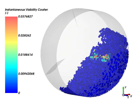 Instantaneous Visibility:返回在当前选定的输出时间每个颗粒暴露的3D视图区域的分数。如果使用多面体颗粒,这将返回每个颗粒组中所有颗粒在当前输出的平均三角形可见性。