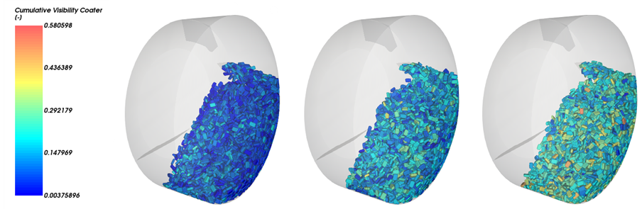 这样就完成了本教程的第三部分,其中Rocky用于对我们在第一部分设置和处理的片剂包衣仿真的喷雾区和颗粒包衣结果进行分析。