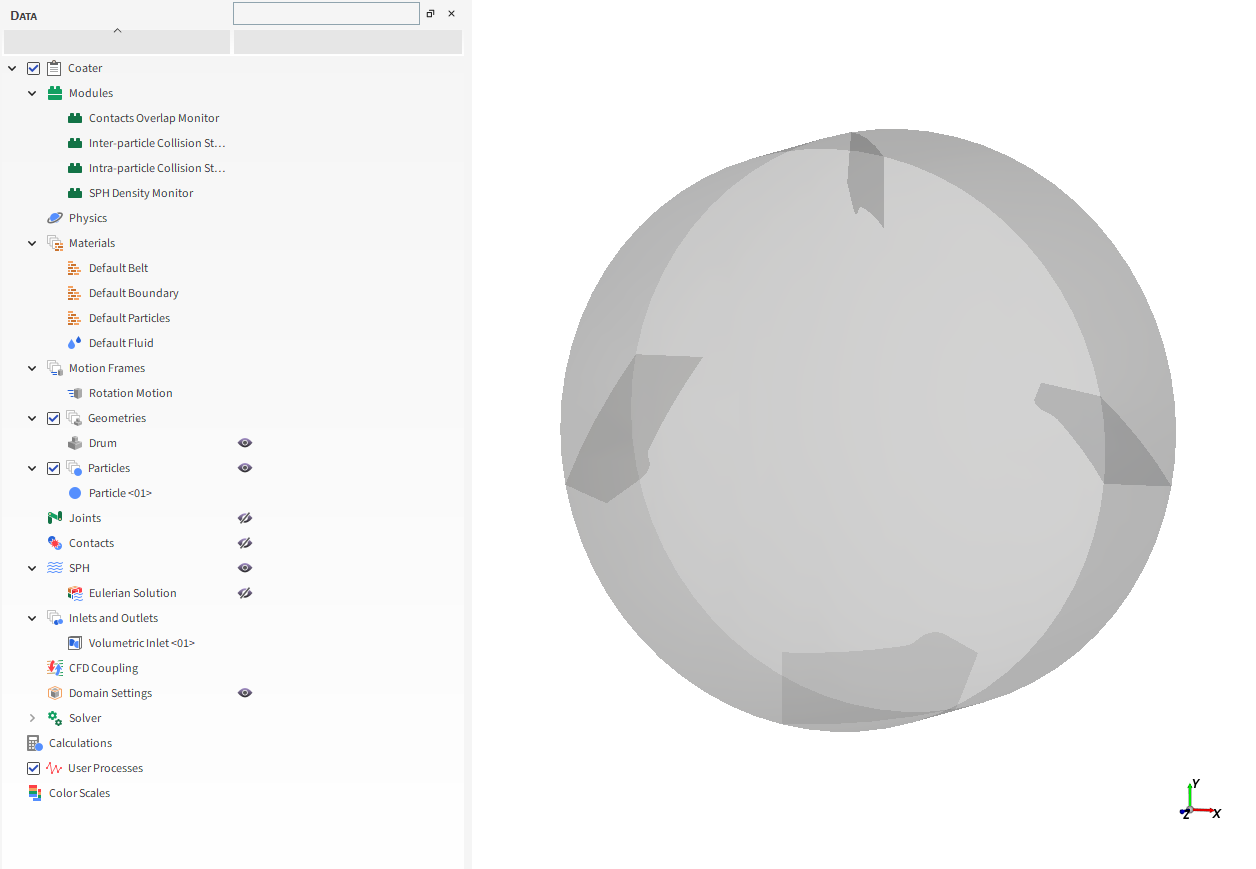Particle <01> @ 2.7 [kg] Volumetric Region | Region Seed Coordinates 0, -0.1, 0 [m] Geometries | Drum (已启用) Use Geometries to Compute (已启用)