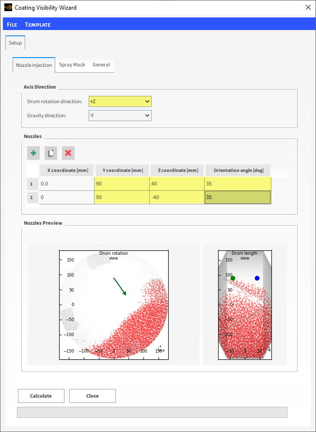 注意: Axis Direction选项将用于定位喷嘴。确保正确定义,并在Nozzles Preview字段中进行检查。