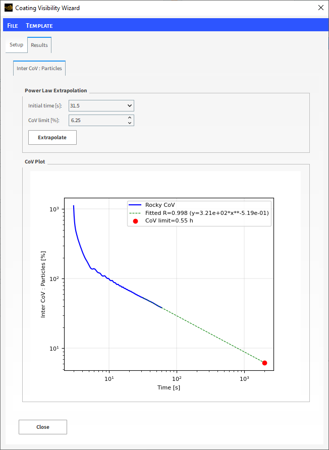 Coating Visibility Wizard在重对数图中显示了CoV结果(显示垂直和水平比例尺)。