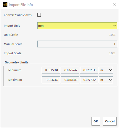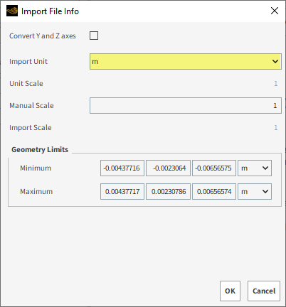 从Import File Info对话框中,确保Import Unit被定义为m,然后单击OK。