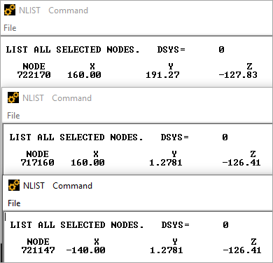 Now, you must replace x1,y1,z1,x2,y2,z2,x3,y3,z3 with the coordinates from the NLIST command for source and with the coordinates given by Discovery, as shown in the screen captures below.