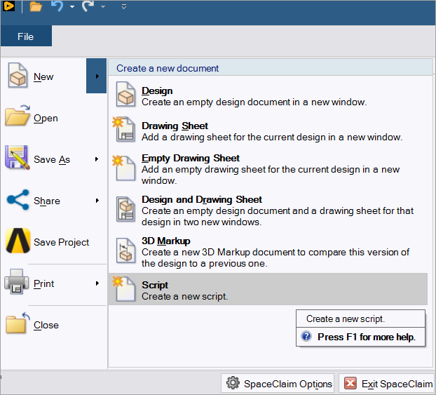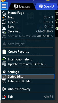 Next, go to the File tab or the three line icon in the menu of both tools, and select either Script Editor or New > Script respectively.