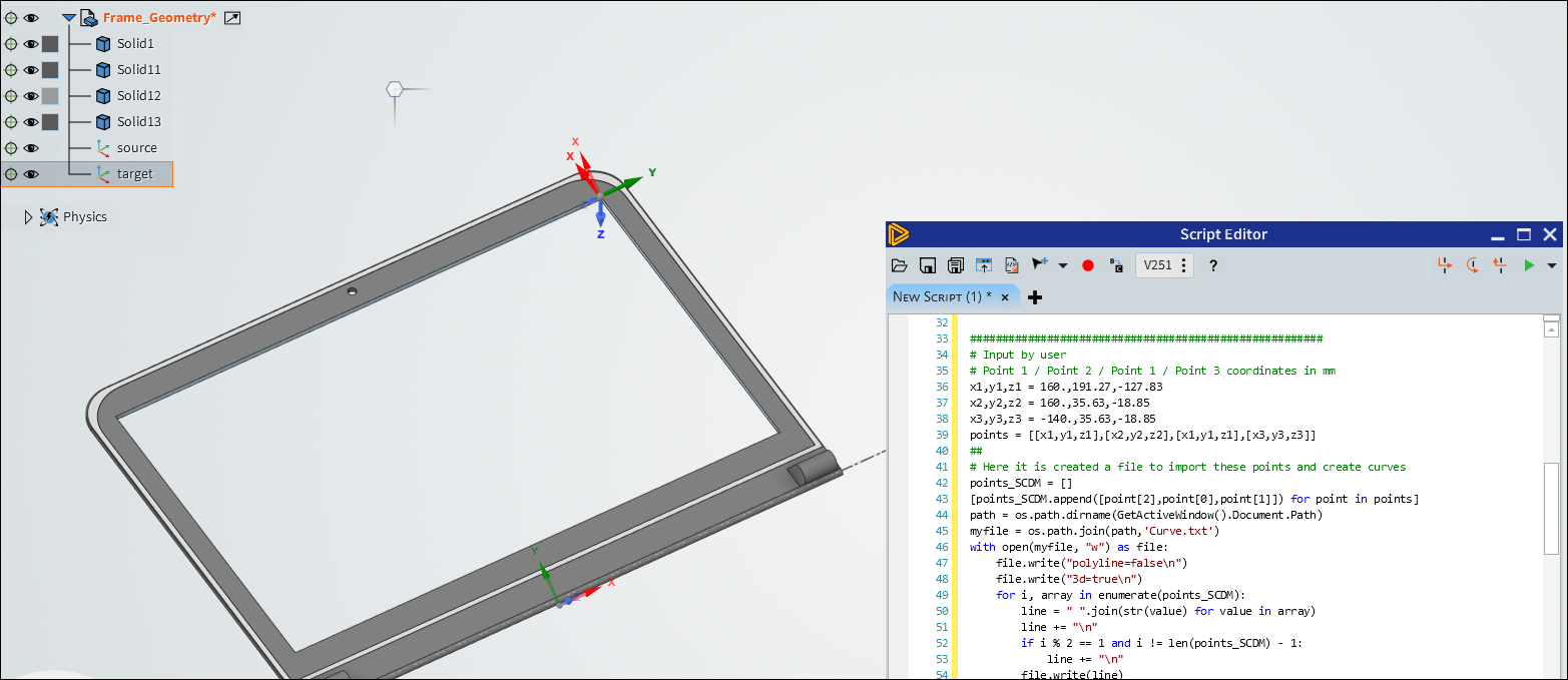 These respective coordinates create the source and target coordinate systems that transfer to the Mechanical application.