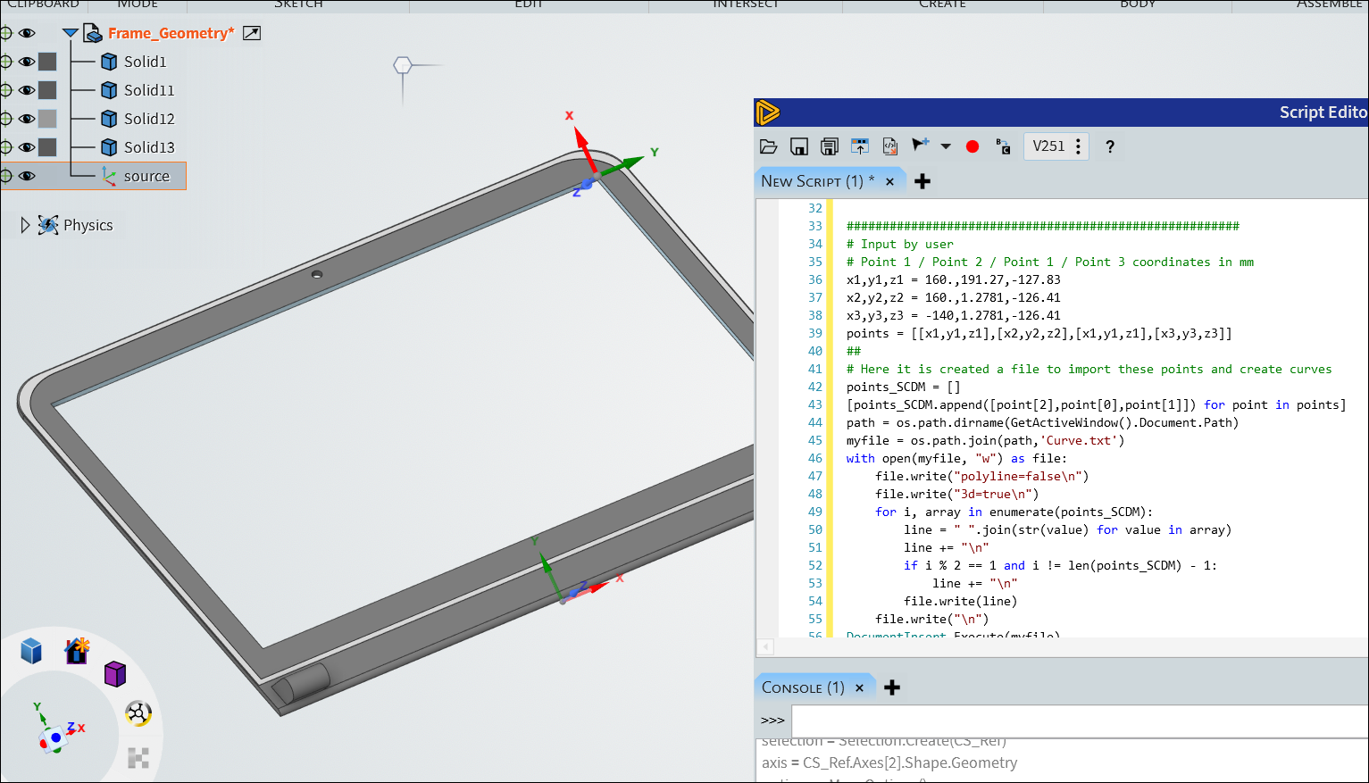 Use a script like the one given on the developer portal to interact with the geometry environment.