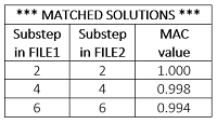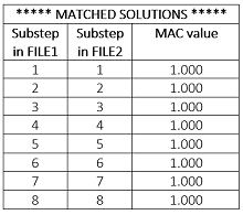 | Substep in FILE1 | Substep in FILE2 | Calculated MAC values | ||