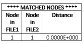 The following table summarizes the RSTMAC calculations for the three cases above. Matching based on node number is more appropriate in this case. Results can also be improved when specific degrees of freedom are compared: in this case, UZ and ROTZ.
