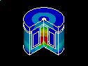 Mechanical APDL continues the analysis on the 2D finite element model, but enables you to generate a three-quarter expanded-plot representation of the flux density throughout the device, based on the defined axisymmetry. The function is purely graphical, and no changes to the database occur.