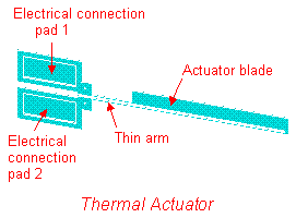 The thermal actuator works on the basis of a differential thermal expansion between the thin arm and blade.