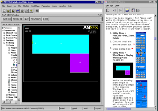 Running the tutorials online while running Mechanical APDL requires that you make the best use of your monitor's display area. With just minor adjustments to the browser and the Mechanical APDL interface, you can read a tutorial's instructions on one side of your screen, and perform the instructions in Mechanical APDL on the other.