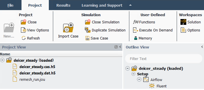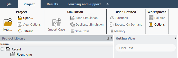 The Fluent Icing project framework is used to organize simulations and runs and to allow their easy access from within the user interface.