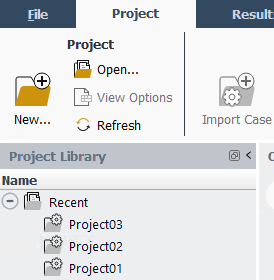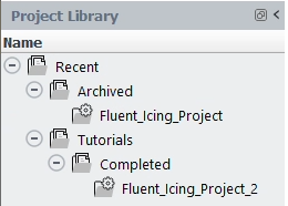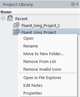 Project Library displays a list of projects that were previously opened in Fluent Icing. Double-clicking a project in this list opens it.