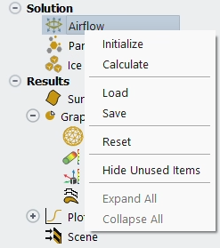 Access the following commands by right-clicking Fluent located in Setup → Airflow → Fluent.