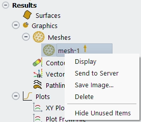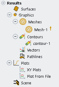 The Results branch in the Outline View provides access to the core Fluent post-processing options as presented in the Remote Visualization Client and offers the same options as in Fluent’s user interface.
