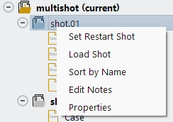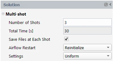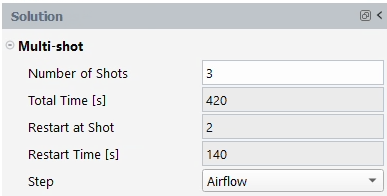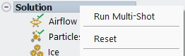 Note: When restarting a multi-shot calculation, it is strongly recommended to keep physical models, conditions, and boundary conditions unchanged. All parameters that are exposed inside Setup in the Outline View of Fluent Icing should remain constant when restarting a multi-shot calculation, otherwise these new simulations will produce results that will be different than the uninterrupted calculation. Only parameters that are exposed inside Solution should be modified as they only affect the convergence, stability and mesh refinement (remeshing) of simulations. Moreover, the original settings of the multi-shot run can be loaded from the Project View by right-clicking the respective multi-shot run and then selecting .