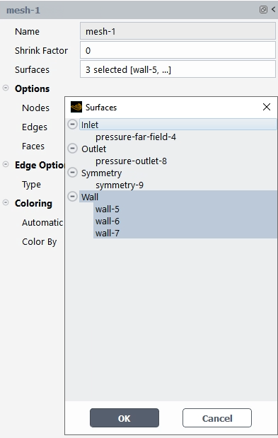 Displays the boundary surface meshes of computational domain (inlet, outlet, wall, symmetry)