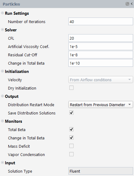 Defines the solver settings of your in-flight icing simulation including monitoring, initialization and output files.