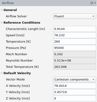 These are the reference airflow conditions used by all simulation types. By default, its values are copied from the Reference Conditions of the case file.