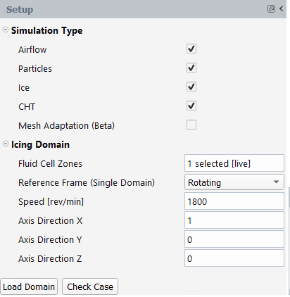 Defines the type of simulation, the in-flight icing conditions, the physical models and the boundary conditions to use in your simulation.