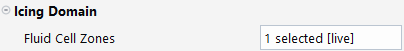 A Fluent case might contain multiple cell zones (fluid or solid) or domains. By default, Fluent Icing will consider all cell zones as the icing domain. To specify the correct fluid cell zones in the multiple cell zones scenario, enable the checkbox and select the desired ones from the zone list.