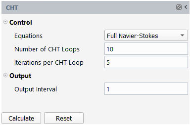 The CHT section defines the control and output of the CHT anti-icing simulation.
