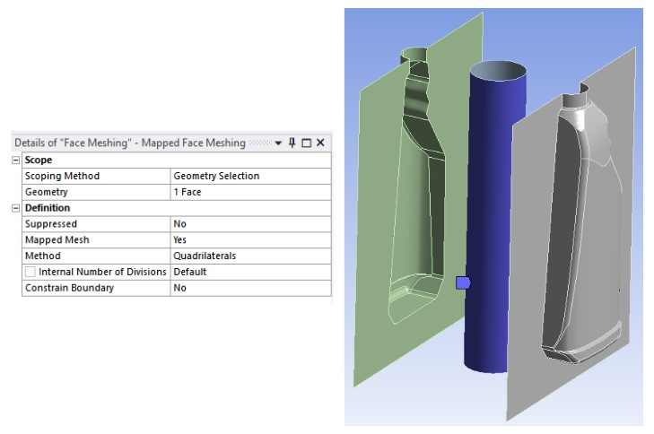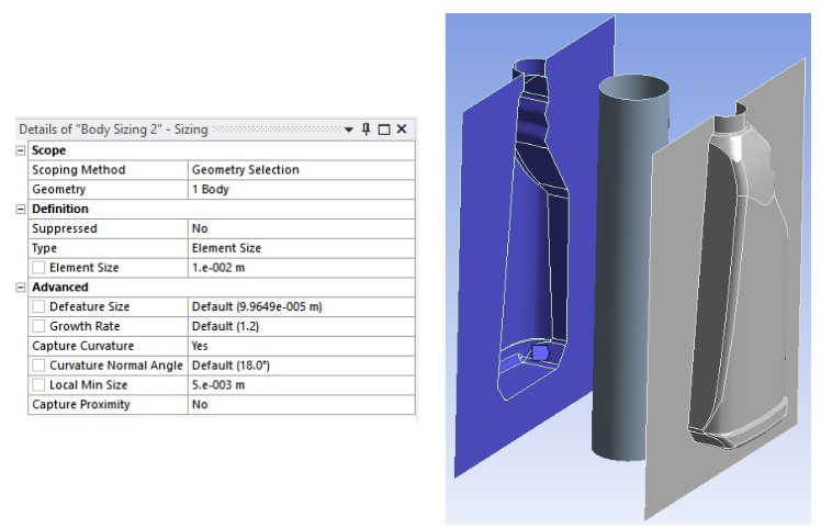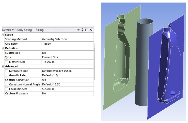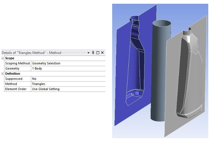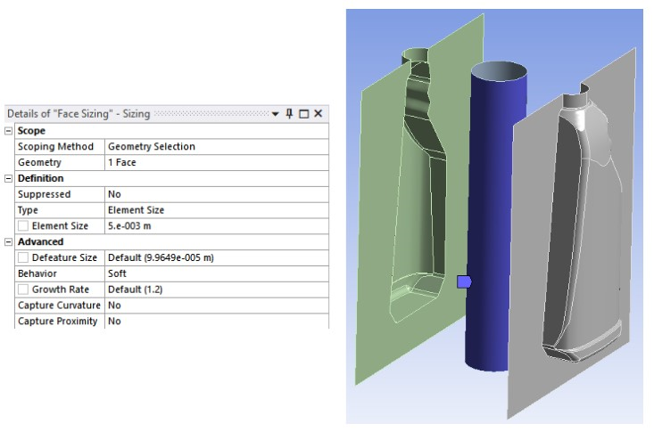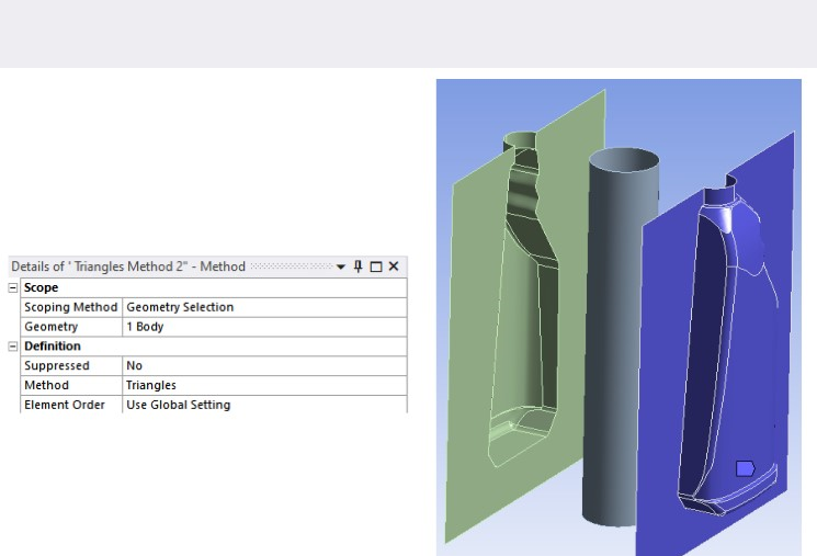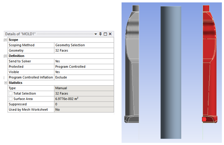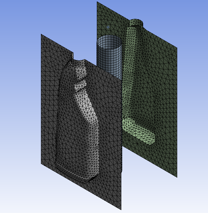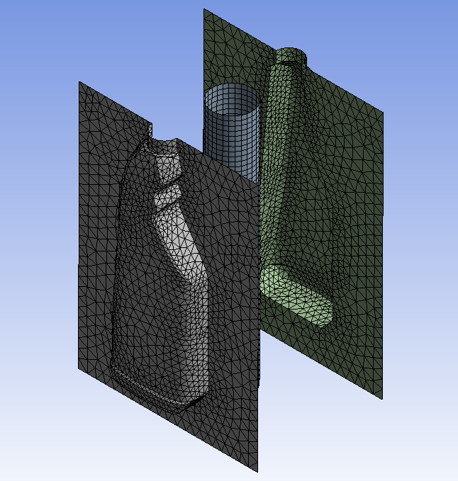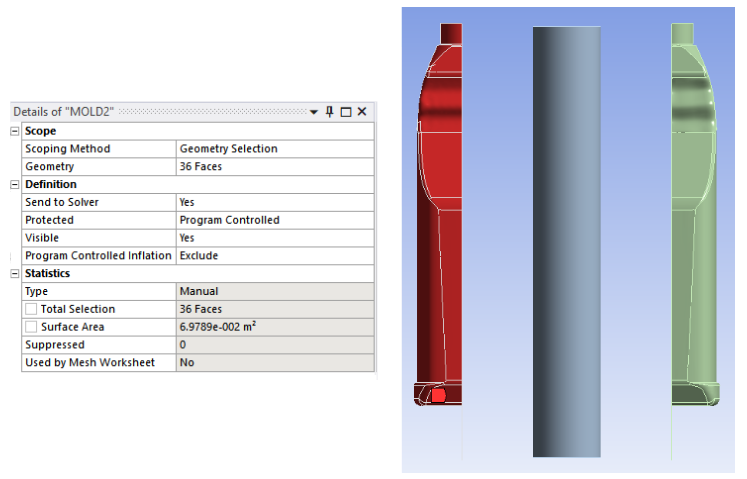 parison+molds.agdbgeometry file that contains the parison and both molds.Double-click the Mesh cell (A3) to open Ansys Meshing, and make the following changes.