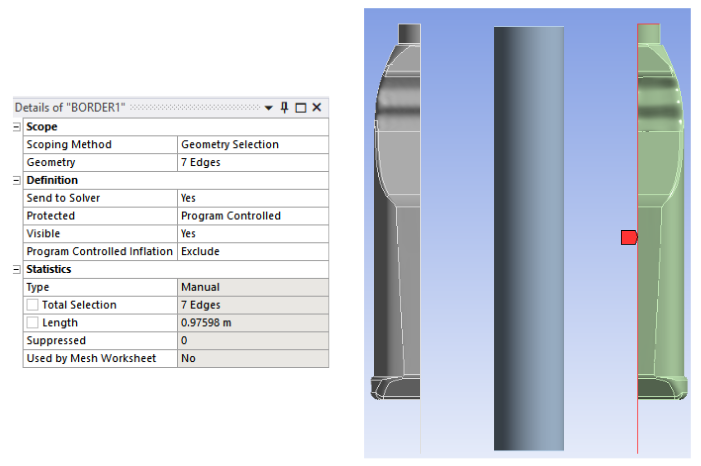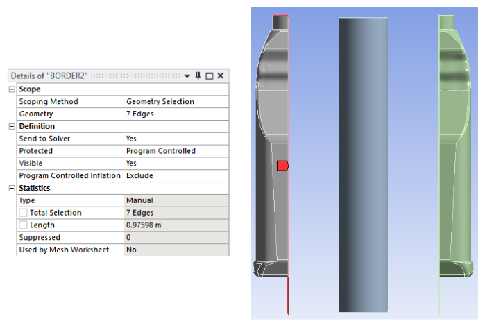 When viewed from +X axis, select all bordered edges of the left mold, right-click the selected edges and select Create Named Selection..., assigning the name of BORDER2.
