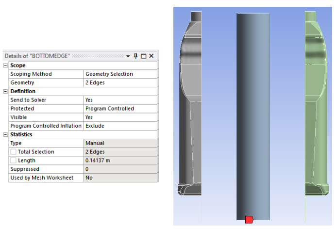 Select the bottom edges (min Y) of the tube parison, right-click the selected edges and select Create Named Selection..., assigning the name of BOTTOMEDGE.