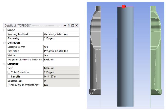 Select the top edges (max Y) of the tube parison, right-click the selected edges and select Create Named Selection..., assigning the name of TOPEDGE.