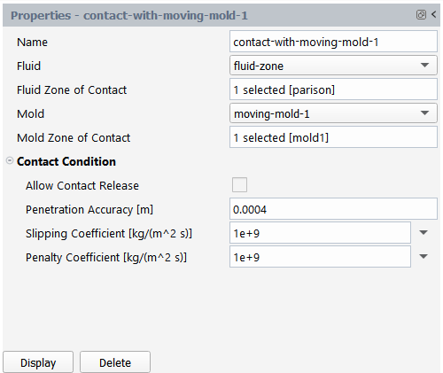 In the Outline View, select contact-with-moving-mold-1 to see it's properties in the Properties Window.