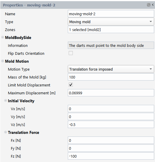 100kg.Enable the Limit Mold Displacement option, and set the Maximum Displacement to