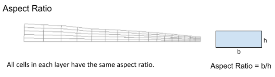 aspect-ratio: allows you to control the aspect ratio of the boundary layer cells (or prism cells) that are extruded from the base boundary zone. The aspect ratio is defined as the ratio of the prism base length to the prism layer height.