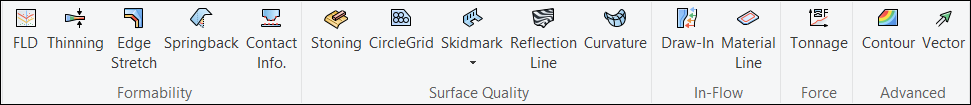 In addition to the Common Ribbon Elements, the Analysis ribbon contains tools that enable you view and evaluate simulation results. Selecting the Analysis ribbon also displays the Deformation Task Panel.